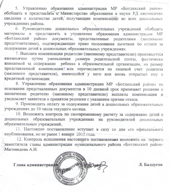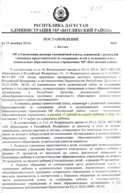 Документ об установлении размера платы, взимаемой с родителей (законных представителей)
